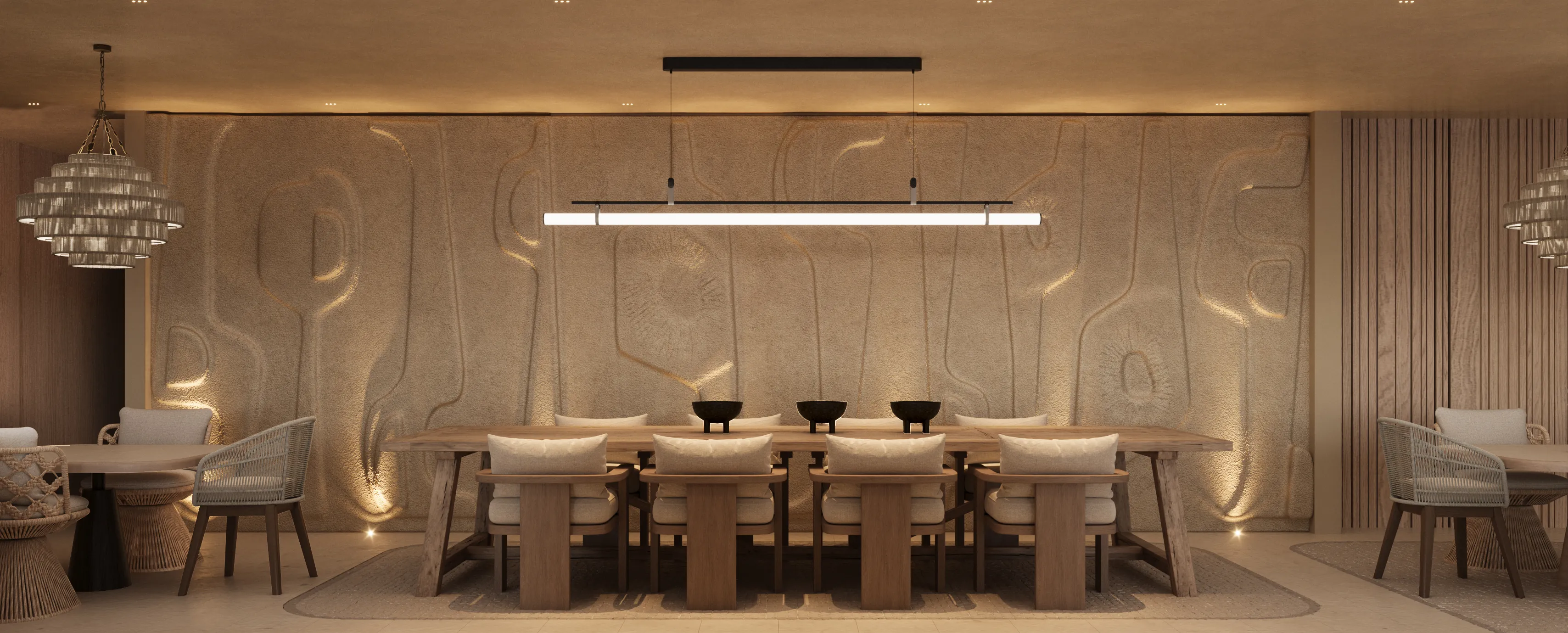 Care Hotel was conceived as a place where well-being and sophistication converge. Our goal was to design a senior living space that offers the quality and comfort of a luxury hotel while meeting the practical demands of assisted living. Set against the natural beauty of Camoján, the architecture unfolds in clean horizontal volumes, with shared spaces such as the spa, cinema and restaurant enhancing the sense of community. Warm materials like stone and wood bring a soft, serene atmosphere to the interiors, where each suite is both private and inviting.
