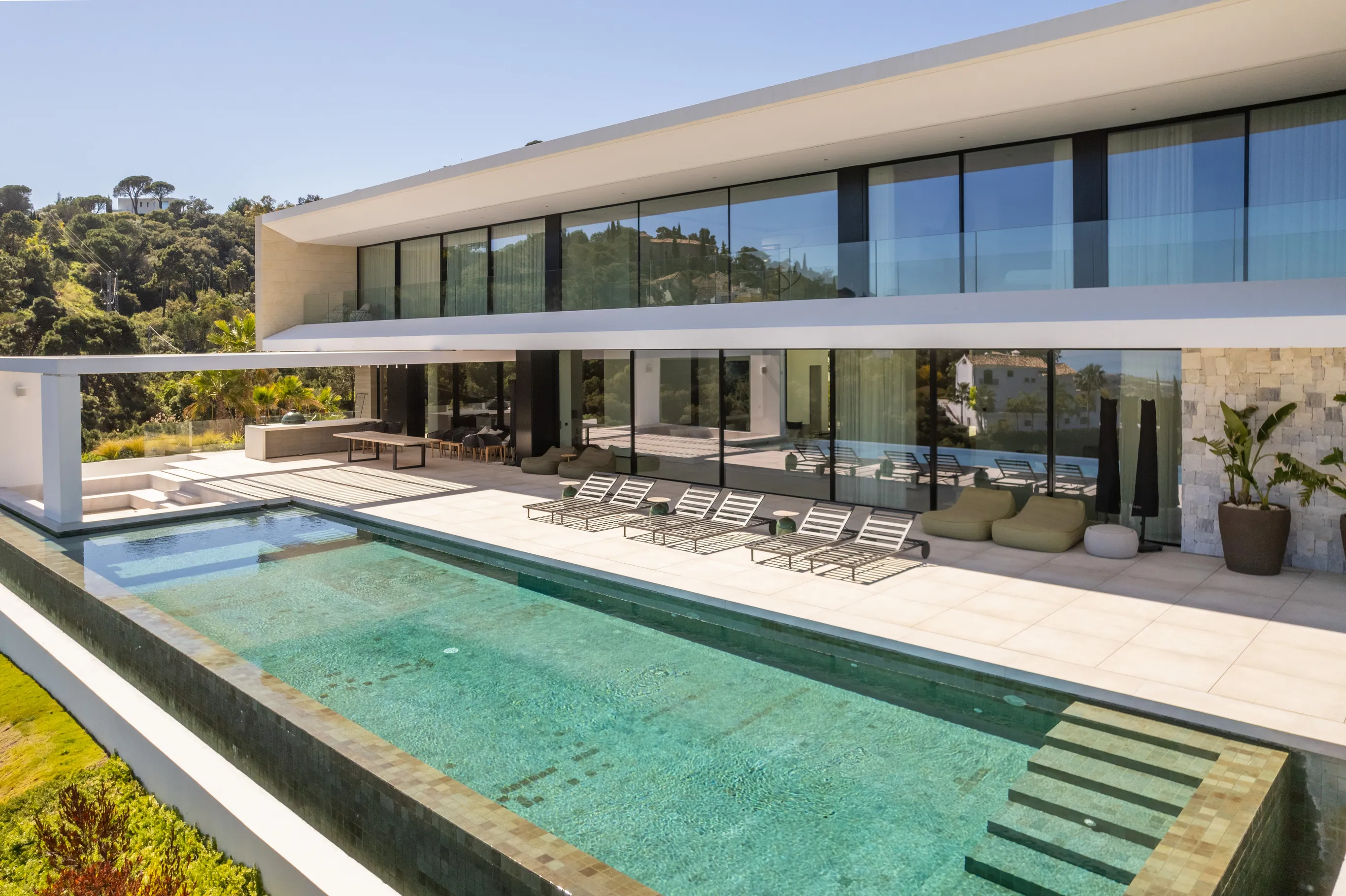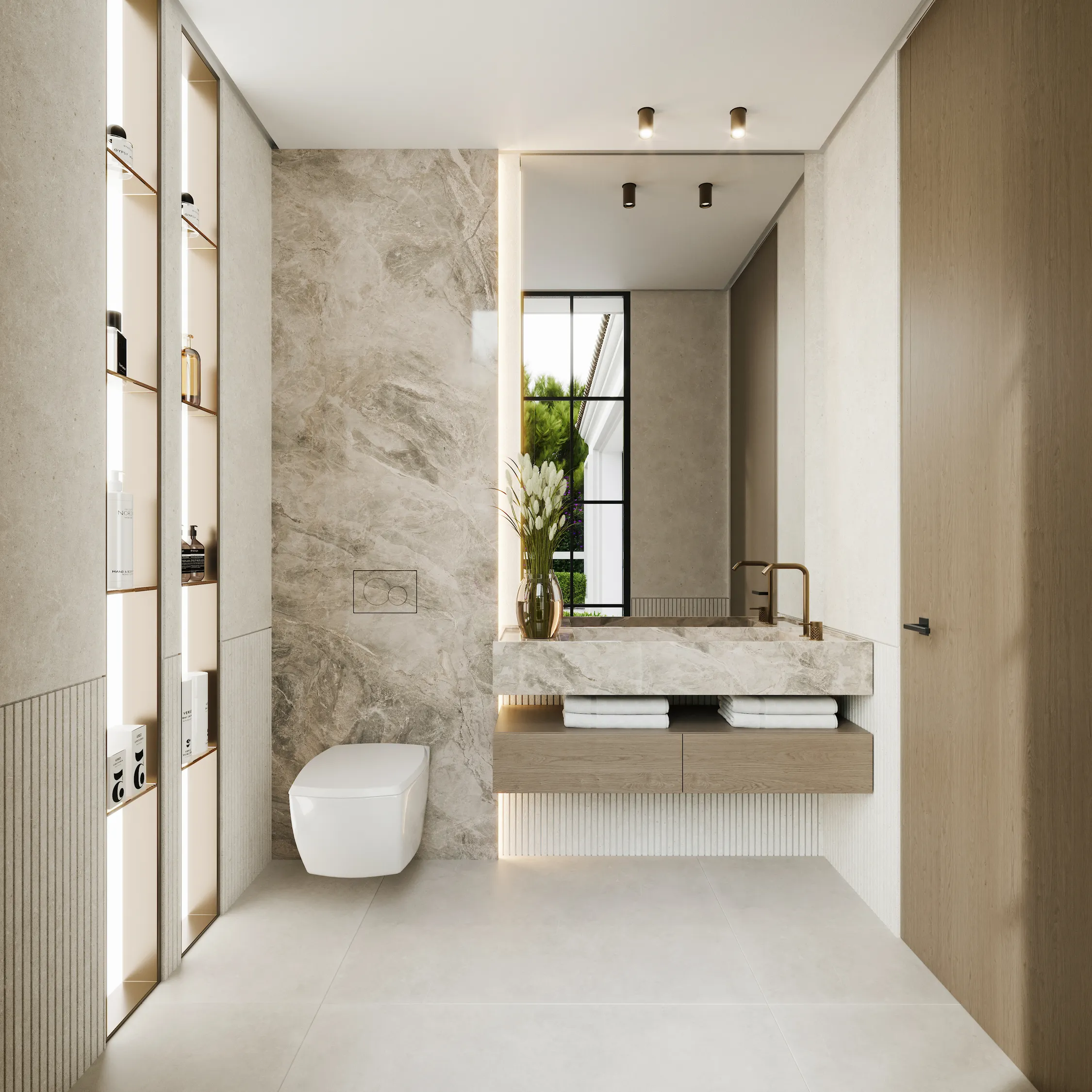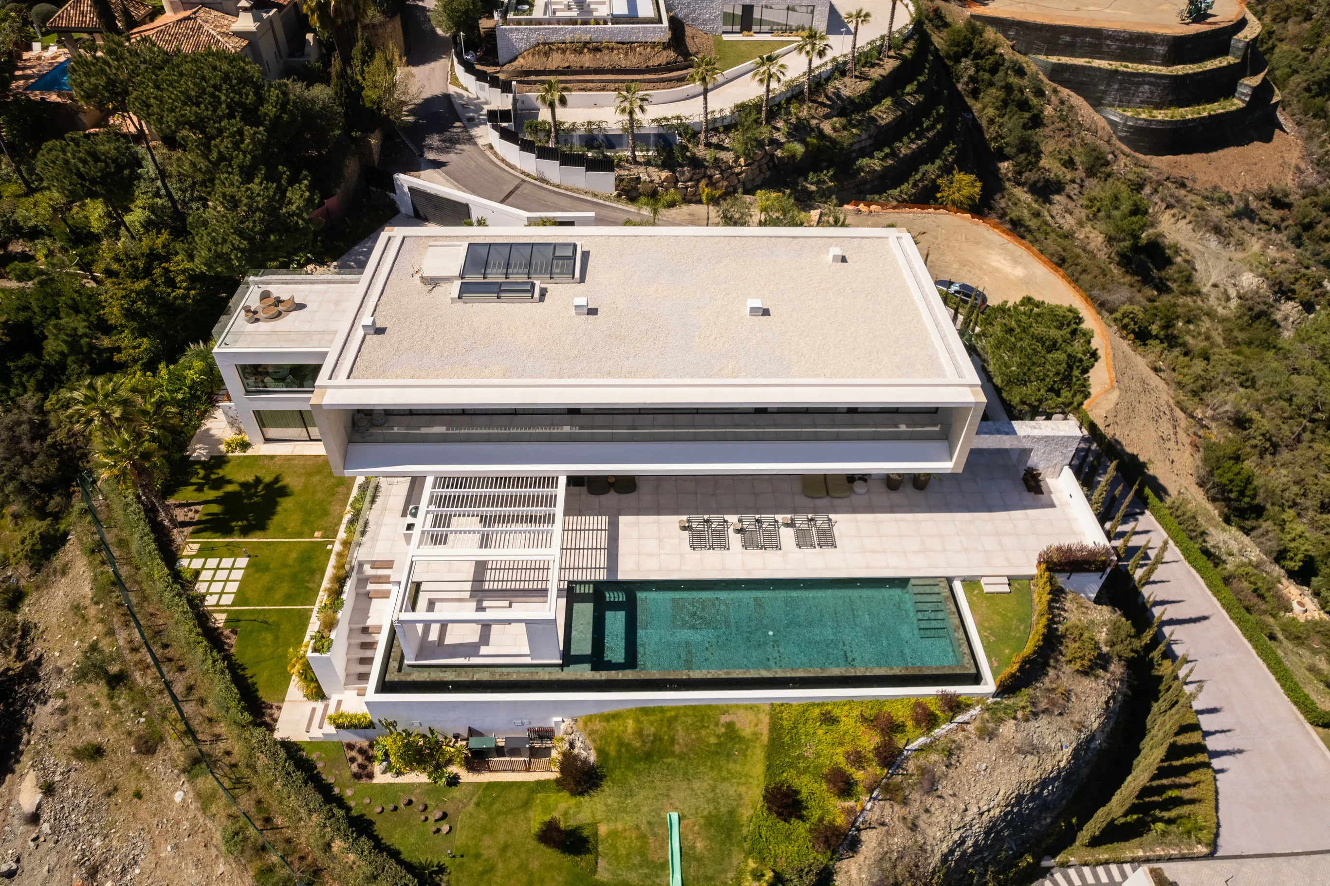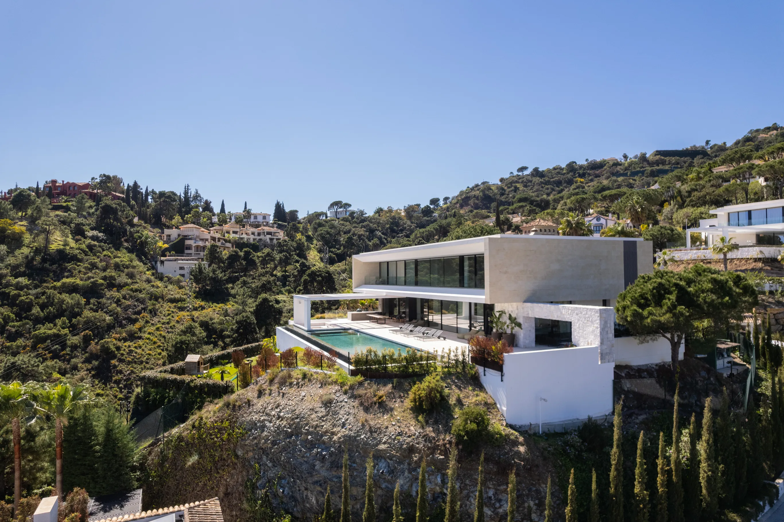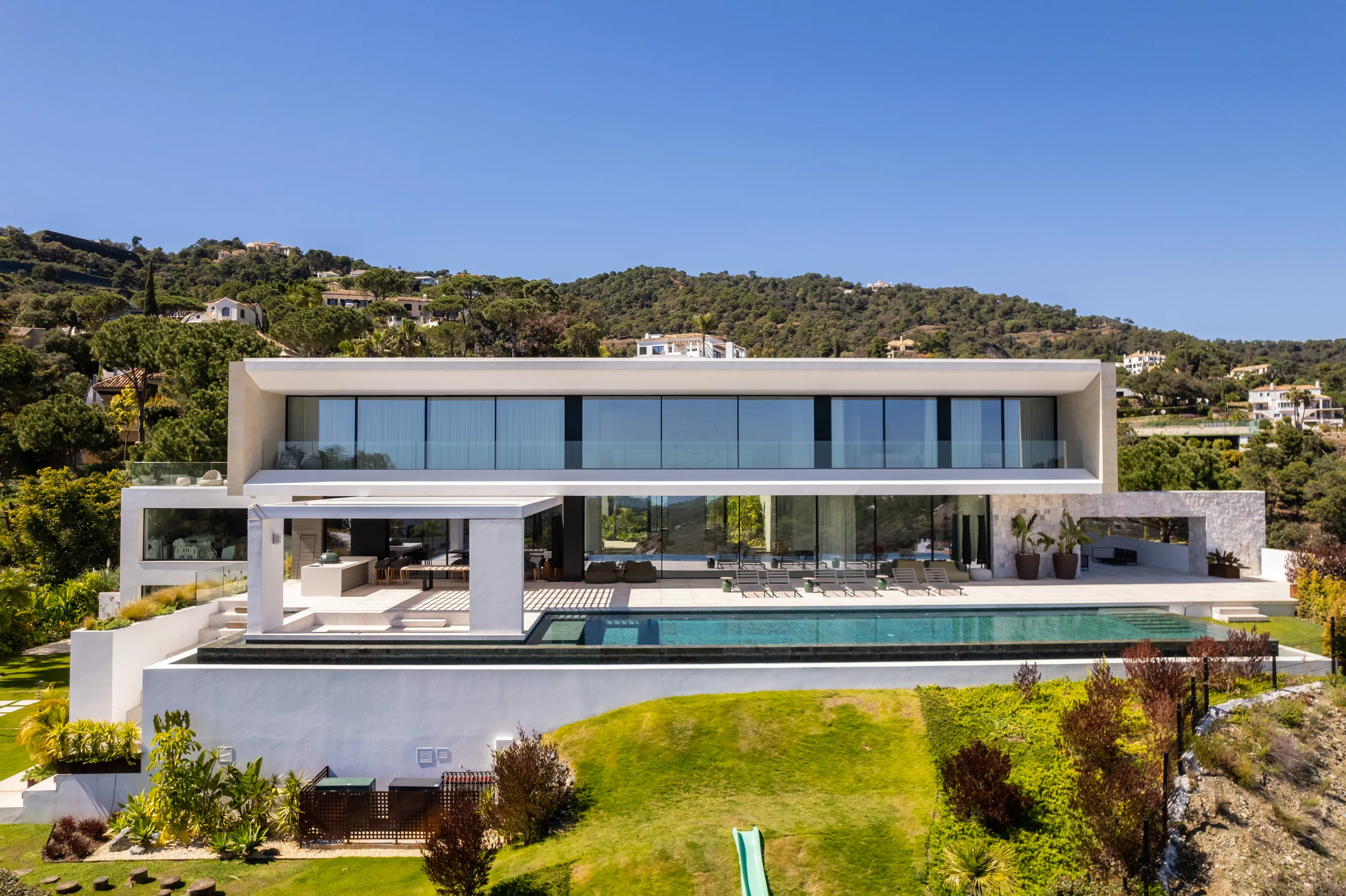 Our vision was to create a home that is both visually bold and emotionally calm, a space that invites light, landscape and family life to co-exist harmoniously. This gesture reinforces the connection between architecture and topography, allowing the structure to feel anchored yet open. Large panes of glass and cascading terraces soften the transition from interior to landscape, while thoughtful material choices, from wood to textured stone, bring warmth and sensory richness to the living spaces.