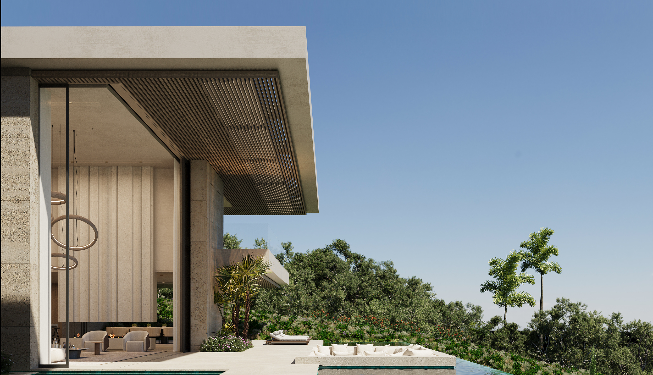 The villa unfolds across the slope, adapting to the land at every level. Courtyards are carefully inserted to frame views, channel light, and create intimate moments in each space.One central courtyard at the hall elegantly separates the day wing from the night wing, while simultaneously opening the interior to the landscape. Circulation through the villa becomes a journey: each step, each level, a new encounter with light, shadow and the surrounding panorama.