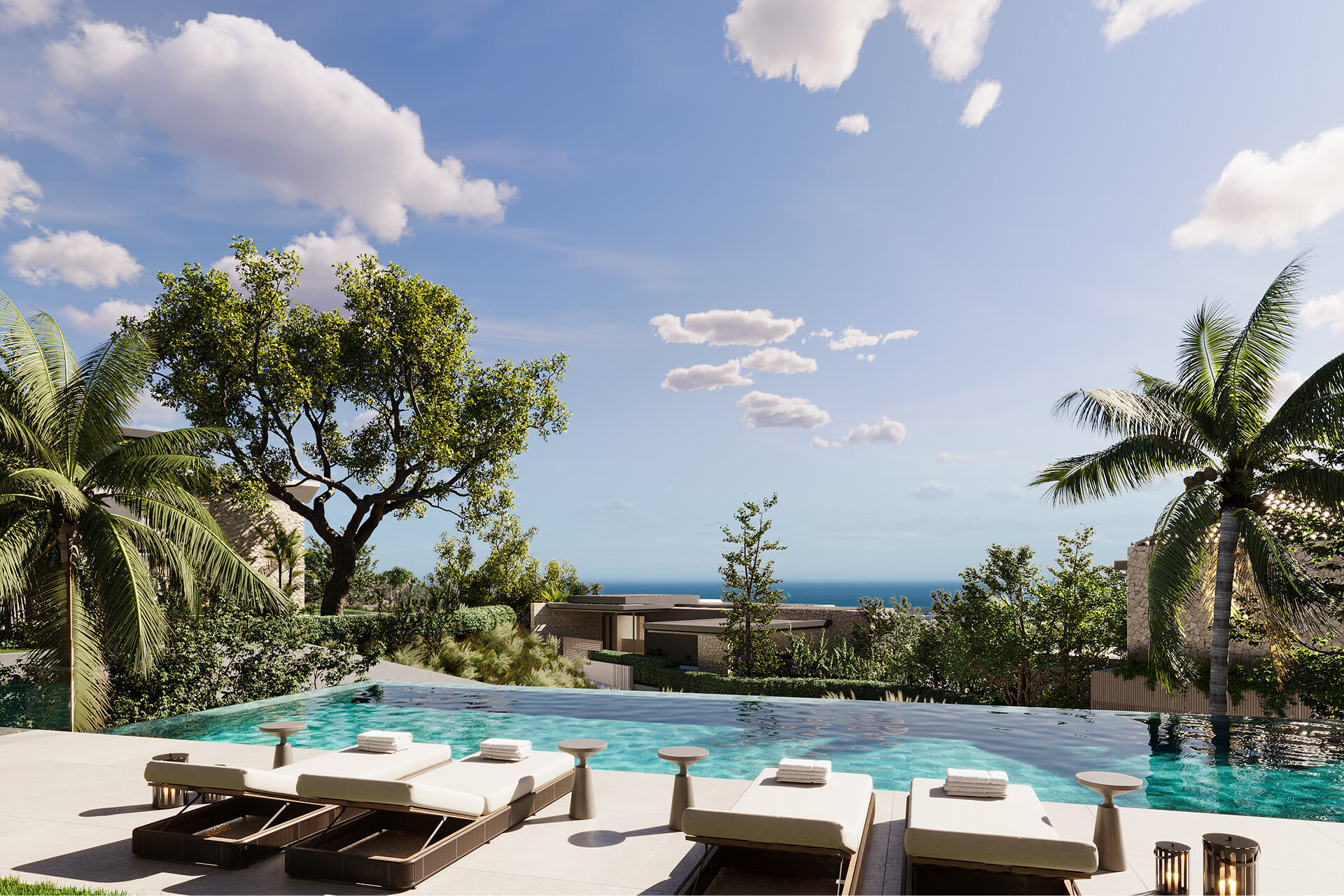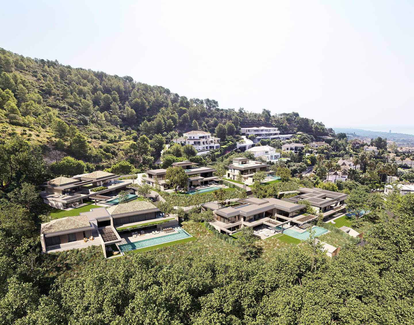 La Cascada was conceived as a refined response to a complex terrain — a gated communityof six villas that embrace the slope through staggered platforms and interconnected spaces. Each home is carefully positioned to preserve views, optimise privacy and establish a continuous connection with nature. Mature vegetation acts as both boundary and backdrop, while courtyards, terraces and gardens define the spatial rhythm of each villa.
